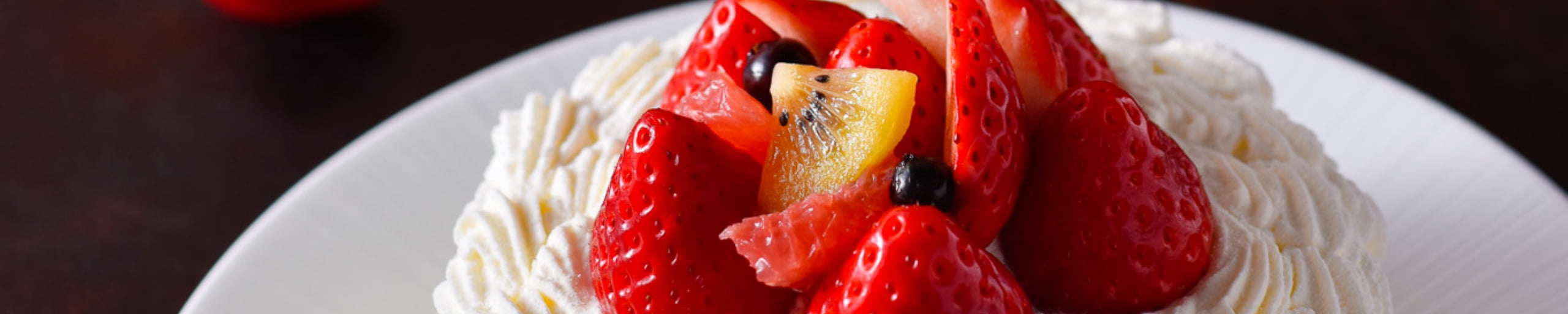 福助ファームこだわりの苺に変わるフルーツを使っています。