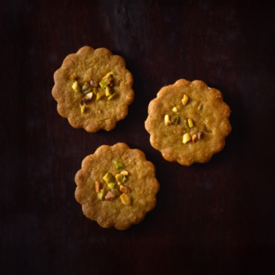 ピスタチオは2種類のペーストを織り交ぜ、食感のアクセントにピスタチオのアッシュを飾り仕上げた嗜好のサブレです。
