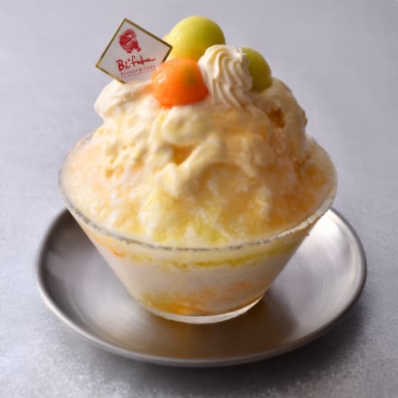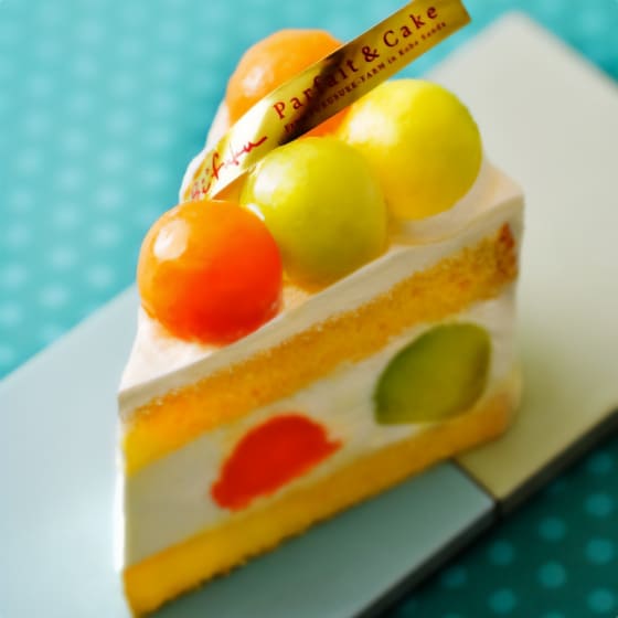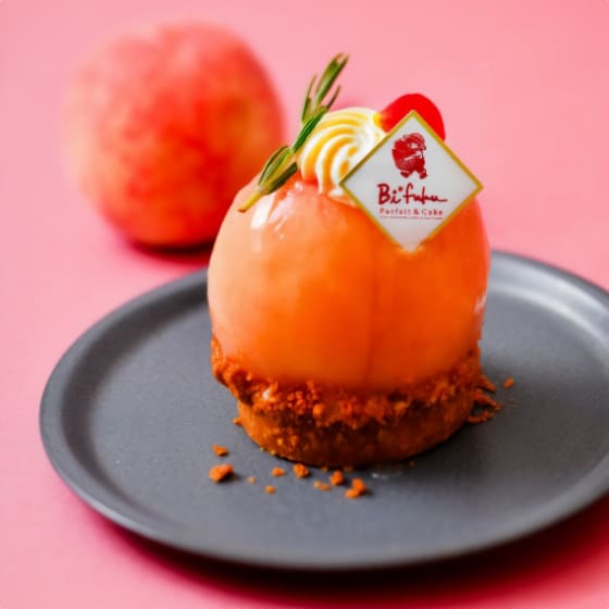 白桃烏龍の香りを生地にのせ、2種類のメロンを合わせて仕上げております。