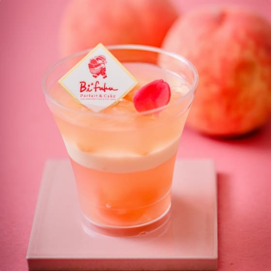 フルーツ屋から新鮮で塾れた岡山県産の白桃を相性がよい、北海道根釧で作られたマスカルポーネを組み合わせた桃とパンナコッタゼリーになっております。