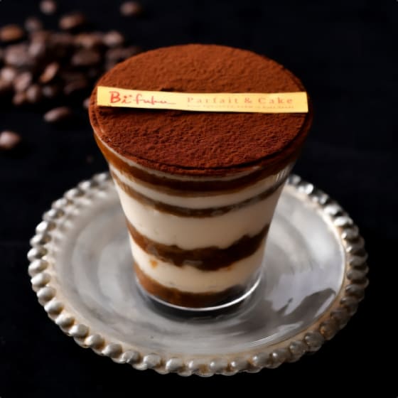 コロンビア産の珈琲豆を挽いたシロップをふんだんに使用し、北海道根釧のマスカルポーネをクリームと合わせ、アクセントの香りにアルコールを飛ばしたワインを入れることで、本場イタリア製法のティラミスになっております。