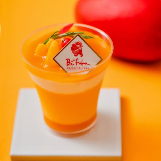 沖縄産マンゴーをゴロゴロと贅沢に使ったプリンです。